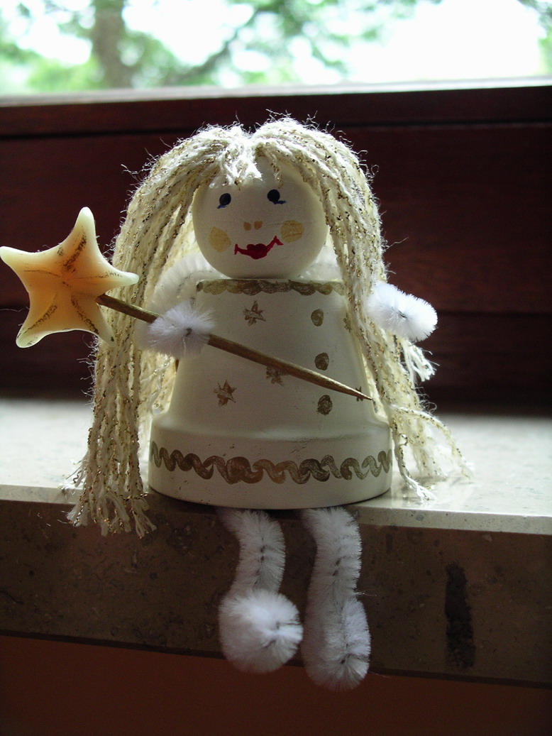 Teetassen, Marmeladengläser, Türschilder, alles was den Haushalt schöner macht, gehört auch zu meinem Hobby. Und wenn man vielleicht einen Weihnachts- oder Schutzengel braucht, mache ich ihn auch gern. Mein Weihnachtsengel hat sogar einen Stern, der im Dunklen leuchtet!